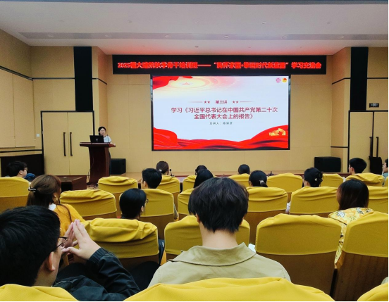在第三讲中,陈妍彦为学员们系统解读了 《习近平总书记在中国共产党第二十次全国代表大会上的报告》 。本次报告题为 “高举中国特色社会主义伟大旗帜,为全面建设社会主义现代化国家而团结奋斗” ,是迈向新征程的关键大会宣言。