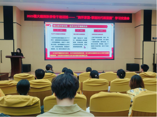 秋意渐浓,学意正酣。2025年11月7日,福州大学建筑与城乡规划学院内,一场以“胸怀家国·擘画时代新蓝图”为主题的秋季学生骨干培训班(第一期)正式拉开帷幕。本次培训旨在引导建筑学子从国家发展的宏大叙事中,深刻理解建筑学科的使命与担当。