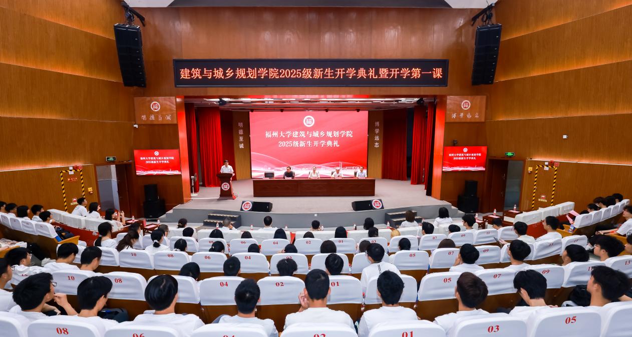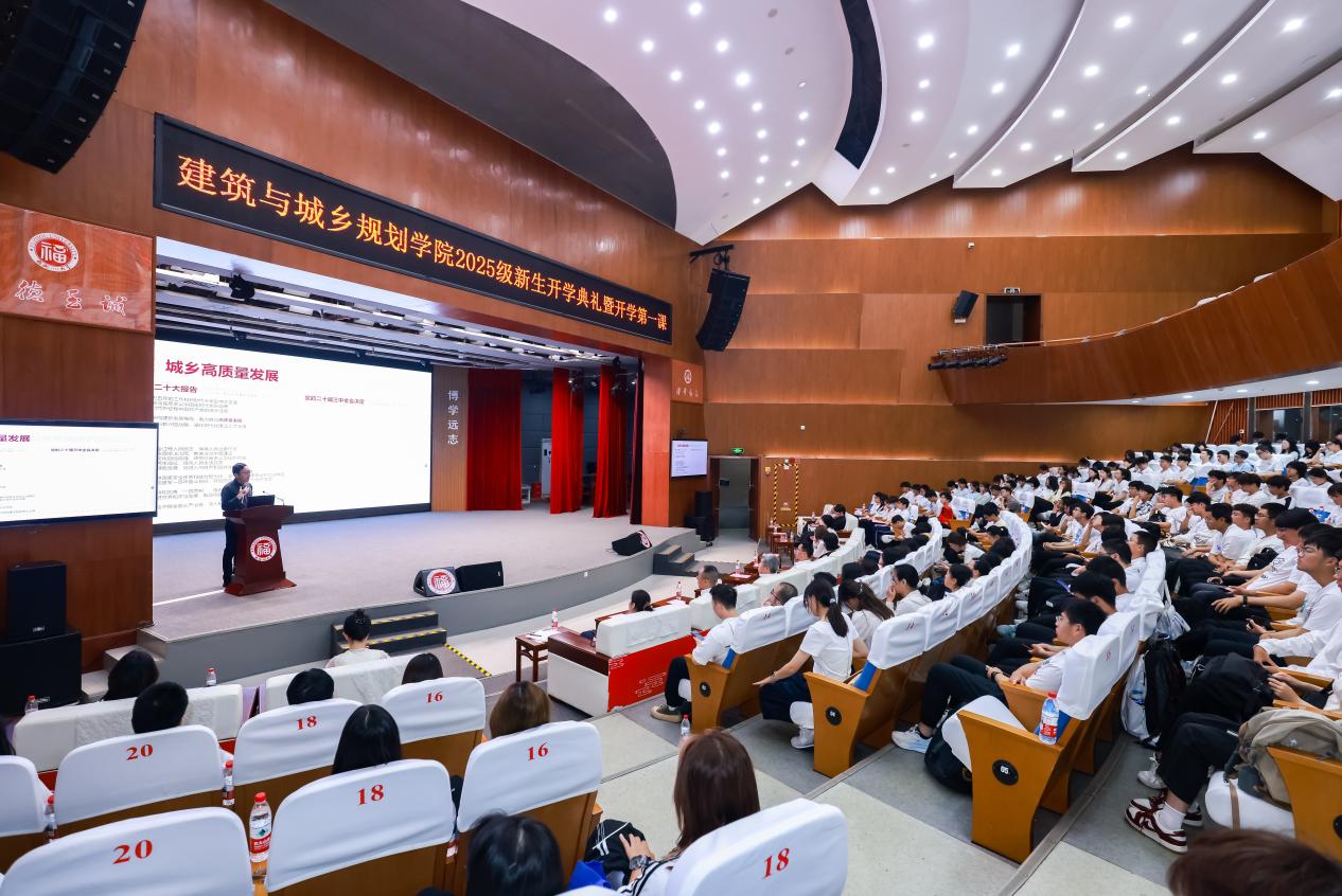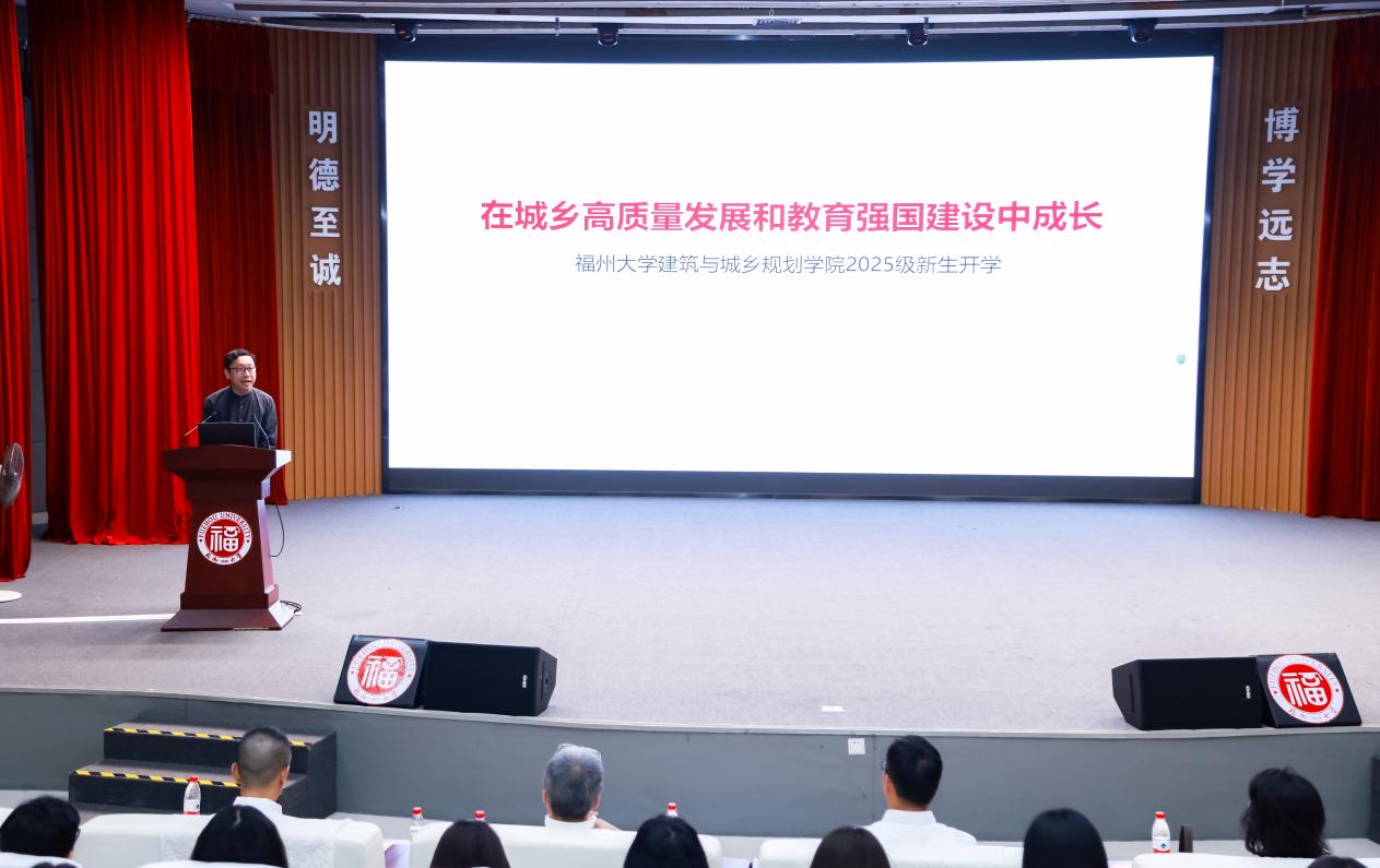 新学期、新目标、新征程。福州大学建筑与城乡规划学院为2025级新生精心策划的“开学第一课”于9月24日上午在图书馆博学厅隆重举行,特邀嘉宾清华大学建筑学院党委书记张悦教授作主题为《在城乡高质量发展和教育强国建设中成长》的开学第一课。学院党委书记李海榕教授、执行院长罗涛教授、党委副书记黄永斌教授、副院长林志森教授以及各系主任、新生班主任与全体本硕新生共同聆听。